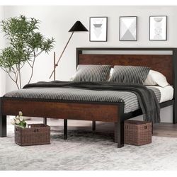 14 Inch Queen Size Metal Platform Bed Frame with Wooden Mahogany B-6$119Costa Mesa, CA