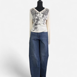 Y2K-style white long sleeve shirt + RSQ High Rise flare jeans$35Covina, CA