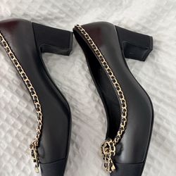 Brand NEW Black Pumps Cap toe with Gold Interlocking chain block heel Sz 8$29Marina Del Rey, CA