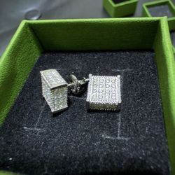 Moissanite 925 Silver 3D Square screwback Earrings 9mm$100Los Angeles, CA