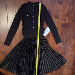 AUI Wool Belted Pleated Midi Dress Brown Minimalist Gold Button Preppy chic S/M$89City Of Industry, CA