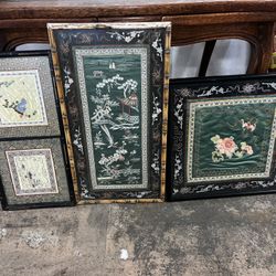 3 Vintage Chinese Silk Fabrics In Frames Under Glass$300Whittier, CA