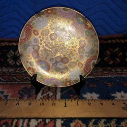Vintage Mid Century Japanese Satsuma Style Porcelain Plate On Wood Stand $50Whittier, CA