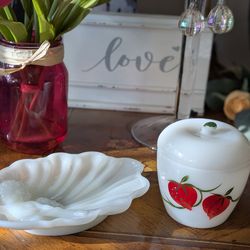 Vintage Avon Heavenly Milk Glass Dish + Bartlett Collins Milk Glass Hand Painted Strawberry Jar MCM$20Anaheim, CA