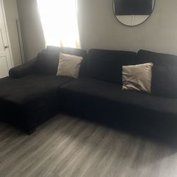 Black Onyx Plush Corduroy Sectional with ottoman and accent pillows 99x99 pick up can deliver $549Montclair, CA