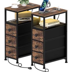 New Narrow End Table Set of 2 with Charging Station, 7.9" Wide Couch Side Table with LED Light, Skinny Nightstand with 3 Fabric Storage Drawers, Slim $30West Covina, CA