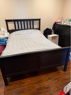 Dark brown Full size bed frame, dresser, mirror, and cabinet$550Los Angeles, CA