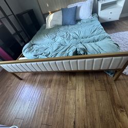 Modern King Faux Leather Bed Frame with Iron Pieces Decor, White B-10$239Costa Mesa, CA