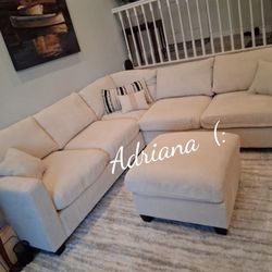 Ivory Corduroy Sectional Sofa With Ottoman New$499Norwalk, CA