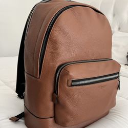 Like New Authentic Coach CU105 Men's West Backpack In Redwood Brown Pebble Leather Bag $160Torrance, CA