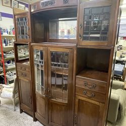 ANTIQUE ART NOVEAU CHINA CABINET CURIO CASE SIDE BOARD BUFFET DISPLAY UNIT LEADED GLASS SKELETON KEYS$99Highland Park, CA