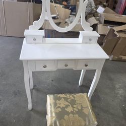 Minor Scratches New Assembled White Vanity Table Mirror & Stool Set$75Santa Fe Springs, CA