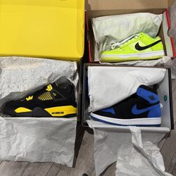 Jordan 4 Thunders, Jordan 1 Royals, Nike Dunk Volt$480South Gate, CA