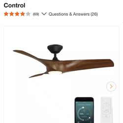 Zephyr 52 in. Smart Indoor/Outdoor 3-Blade Ceiling Fan Matte Black Distressed Koa with 3000K LED and Remote Control New in box$170Lynwood, CA