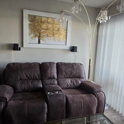2 Piece Brown Reclining Sofa Set ( Loveseat with Console & 2 Cup Holders & a Storage) $799Artesia, CA