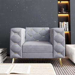 Velvet Upholstered Couch with Square Arms and Tufted Back, Mid-Century Modern Sofa Couch with Metal Buckle Decor and Metal Legs for Living Room, Offic$120El Monte, CA
