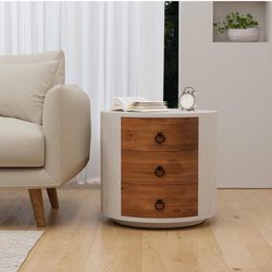 Koncemel Farmhouse Round Nightstand with Drawers, 20 Inch MDF Storage Cabinet, 3 Drawer Chest for Bedroom Living Room$60Carson, CA