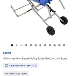 Kobalt 15 Amp 10 Inch Blade Sliding Table Tile Saw With Stand$650San Dimas, CA