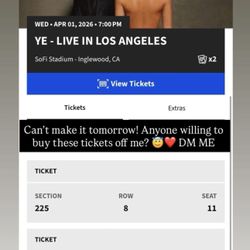 Ye Live Concert Sofi April 1 Floor$400Brea, CA
