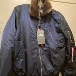 Alpha Industries Bomber Jacket Size XL Slim Fit Blue/ Brown Fur $95Los Angeles, CA