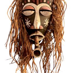 Primitive African X Large Wooden Handmade & Painted Mask With Pipe$100Redondo Beach, CA
