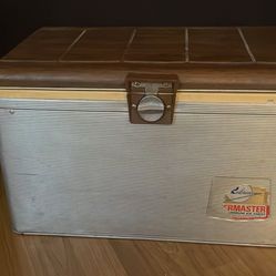 Vintage Poloron Thermaster ice chest aluminum w/woodgrain pattern top. As is good cond Pickup dlv. 1950-60's$110West Hollywood, CA