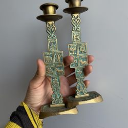 VINTAGE BRASS Pair: rustic brass candle holders$25Los Angeles, CA
