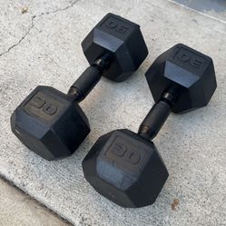 Set pair of 45-pound each rubber-coated hexagonal dumbbells. $120Downey, CA