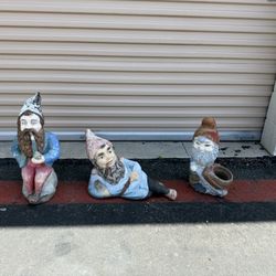 Set of 3 Vintage Concrete Garden Gnome Statues – Hand Painted Outdoor Decorated $350San Fernando, CA