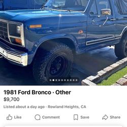 1981 Ford Bronco$1,000Rowland Heights, CA
