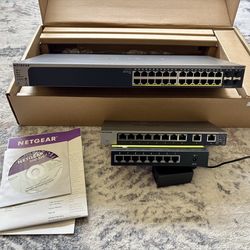 Netgear ProSafe GS728TP managed switch + netgear GS110MX unmanaged switch + Treadnet TEG-S80g unmanaged switch. All 3 for $75$75San Marcos, CA