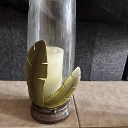 Three Piece Metal and Glass Hurricane Candle Holder featuring a Leaf Design$5Chula Vista, CA