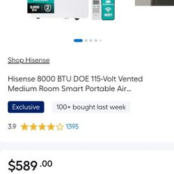 Hisense 8000 BTU DOE 115-Volt Vented Medium Room Smart Portable Air Conditioner Remote Included$175Carlsbad, CA