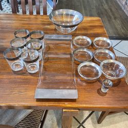 Mid Century Silver Rim Glassware Set – 15pc MCM Barware Tumblers Bowls Tray$45Bonita, CA