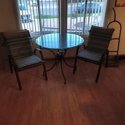 Glass table with two chairs and cushion patio set great shape$75Santee, CA