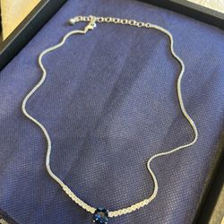 Silver Toned Simulated Sapphire And CZ Necklace $12El Cajon, CA