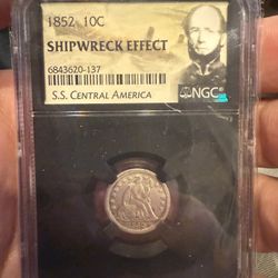 1852 10c Seated Liberty Shipwreck Silver$500Lakeside, CA