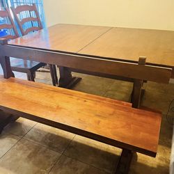 Solid wood, extendable dining table. 4 chairs + bench.$175Spring Valley, CA