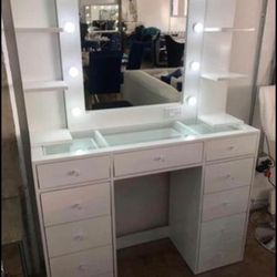 Vanity Set Makeup Table LED Lights Mirror White Dresser✨New$549Chula Vista, CA