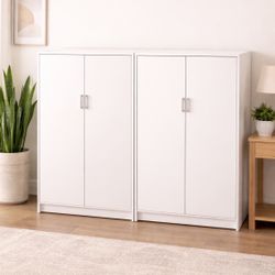 Set of 2 white storage cabinets with doors. $140San Diego, CA
