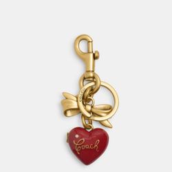 Coach Bow Heart Locket Bag Charm Keychain Key Fob CZ276 Brass / Ruby Red$79Lakeside, CA