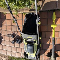Ryobi lawn mower and weed whip cordless with 2 batteries$330Escondido, CA