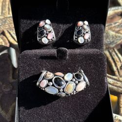 Sterling Silver Slider Pendant For Necklace & Matching Earrings Multi Color Stones Abalone , Quartz, Moonstone $50El Cajon, CA