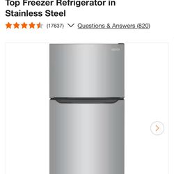 Stainless Steel Refrigerator Fridge With Freezer Frigidaire With Delivery $400San Diego, CA