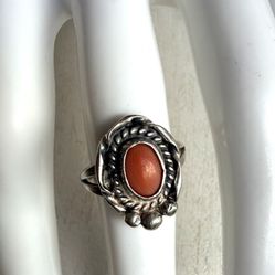 Vintage Sterling Silver Coral Ring Navajo Split Shank Statement $50Carlsbad, CA