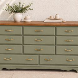Sage Green 8 Drawer Dresser with Wood Top | Refinished Statement Piece$275San Marcos, CA