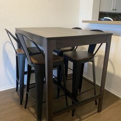 EKEDALEN DARK BROWN BAR TABLE WITH 4 BURNEY COUNTER/BAR STOOLS$400San Diego, CA