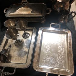 Silver Plates Water Pitcher Cups Ect.$160El Centro, CA