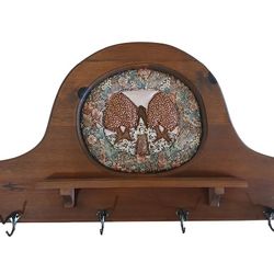 Vtg 32" Solid Wood Wall Hanger Rustic Country Hooked Shelf Quilted Stitch Decor$45El Centro, CA