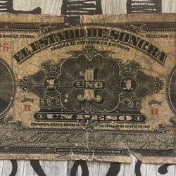 Un Peso Estado De Sonora 1913 $50Brawley, CA